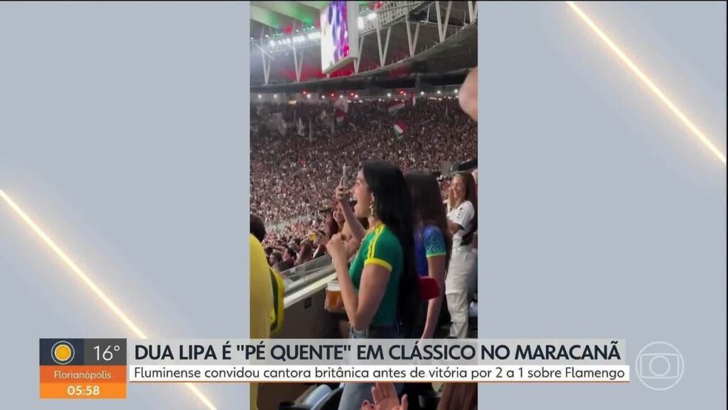 A cantora Dua Lipa encontrou a apresentadora Sabrina Sato no ensaio da Unidos de Vila Isabel que aconteceu na noite de quarta-feira (20), na quadra da escola na Zona Norte do Rio. Ela também assistiu a vitória do Fluminense sobre o Flamengo por 2 a 1 no Maracanã. O encontro entre as musas em noite de futebol e samba foi registrado pela escola, que destacou que a artista aprendeu um pouco sobre a história do carnaval e da Azul e Branca da Zona Norte.