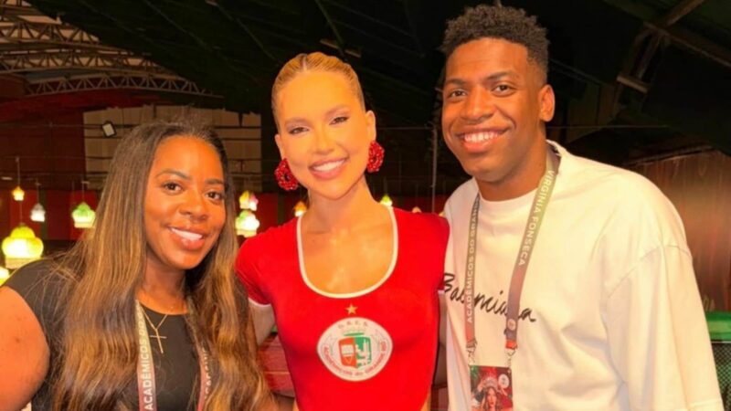 Durante o ensaio, Virginia posou ao lado da família do namorado e publicou registros nas redes sociais, celebrando a companhia. Os três circularam juntos pela quadra, conversaram com integrantes da escola e acompanharam de perto o ritmo da bateria, em mais uma demonstração pública de apoio da família do atleta ao relacionamento e à atuação dela no Carnaval.