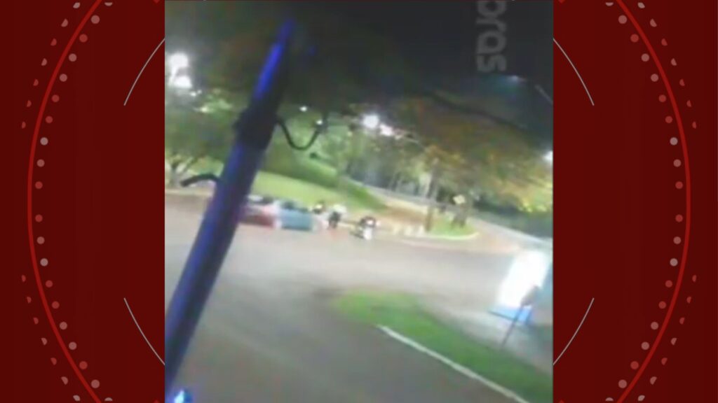 As imagens mostram que a vítima, que também tem 20 anos, estava parada em uma moto quando foi atingida pelo carro do suspeito.