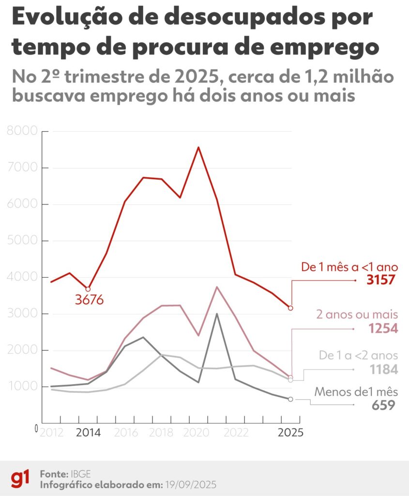 Mais de 1,2 milhão de brasileiros estão há mais de dois anos sem conseguir recolocação, segundo dados da PNAD 2025.